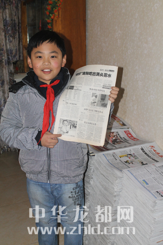 ????12月11日晚,記者來到許登科家。剛進(jìn)門,一個(gè)戴著紅領(lǐng)巾,撲閃著大眼睛的小男孩就熱情地跟記者打招呼,他就是和晚報(bào)同歲的李逸揚(yáng),目前就讀于周口六一路小學(xué)五年級(jí)。