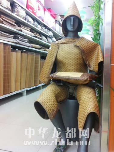 ??? 5月12日,記者在周口市區(qū)七一中路某大型超市看到,營(yíng)業(yè)員把多種涼席產(chǎn)品裝飾在一個(gè)坐姿模特身上,在人來(lái)人往的客流中,在營(yíng)業(yè)員招攬顧客的吆喝聲中,這位坐等客人上門(mén)的“蓑笠翁”不用說(shuō)一句話,卻賺足了市民眼球。晚報(bào)記者 徐松 攝