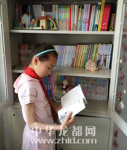 據(jù)了解,金株看得最多的是童話、文學類以及科普類書籍。金株有自己喜愛的作家,“楊紅櫻、曹文軒、伍美珍、郁雨君、楊鵬、沈石溪、黃蓓佳、湯素蘭、杰羅尼摩·斯蒂頓等等?!绷盒懔峤榻B,女兒剛上幼兒園的時候,自己給她買來《世界經(jīng)典童話》上下冊,每天給金株念。女兒5歲的時候,梁秀玲就鍛煉金株把講過的故事復述出來,慢慢地金株能把故事完整地復述。梁秀玲又帶她買了一些童話書鼓勵她自己看?!懊康街苣?,我就會帶著金株去逛書店,每次都要買書。她比較喜歡按照作者的系列叢書來收藏,現(xiàn)在家里的兩個書架都沒放下她的書,有300多本藏書?!?/p>