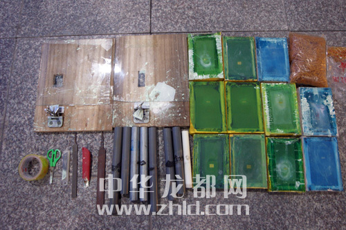 ????同年11月5日,在獲知許某、韓某夫婦再次從廣東購(gòu)得假幣,并已伙同孟某完成防偽加工工序的準(zhǔn)確信息后,為避免假幣流入市場(chǎng),周口公安機(jī)關(guān)經(jīng)偵部門(mén)“收網(wǎng)”。11月6日,市公安局犯罪偵查支隊(duì)經(jīng)偵三個(gè)大隊(duì)全體民警在文昌分局許灣中隊(duì)、沈丘縣公安局經(jīng)偵大隊(duì)的協(xié)同配合下,直撲犯罪窩點(diǎn)。于當(dāng)天下午2時(shí)許,在沈丘縣抓獲犯罪嫌疑人韓某、孟某及其他涉案人員,并在孟某家中當(dāng)場(chǎng)繳獲假幣數(shù)百萬(wàn)元(圖一),假人民幣加工模具12套(圖二)。