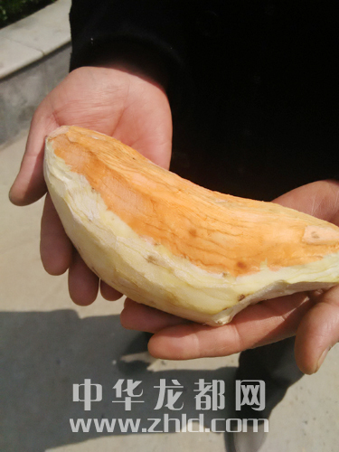? 近日,淮陽(yáng)縣居民林樹(shù)松買(mǎi)到了一塊“混血”紅薯,紅薯一半是牙白色,一半是橘紅色。整塊紅薯長(zhǎng)約23厘米,最粗處直徑約22厘米。因?yàn)閾?dān)心紅薯基因變異,林先生沒(méi)敢食用這塊紅薯。為此,記者采訪了周口師范學(xué)院生命科學(xué)與農(nóng)學(xué)學(xué)院院長(zhǎng)陳龍。陳教授說(shuō),紅薯是塊莖類作物,不像小麥、大豆那樣,它不是種子,所以基本上不存在基因變異的情況。一塊紅薯出現(xiàn)兩種顏色,應(yīng)當(dāng)是正?,F(xiàn)象,市民可以食用?! ⊥韴?bào)記者 朱海龍 攝