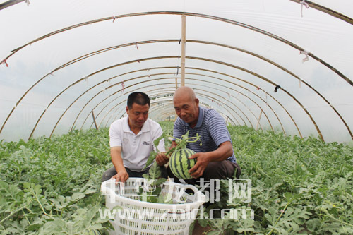?? 近日,項城市南頓鎮(zhèn)大棚西瓜基地開園,培育的“半截樓”8428西瓜,因果瓤脆嫩、味甜多汁走俏市場。該基地擁有大棚80多個,占地面積120多畝,畝均收入2萬多元。圖為該基地工作人員在采摘西瓜?! 。ǚ簿颁h 攝)