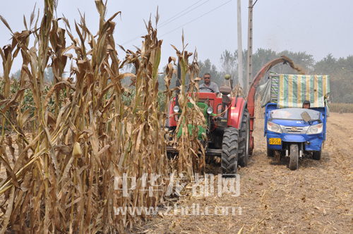 ???? 圖① 9月27日,扶溝縣大李莊鄉(xiāng)馮老村農(nóng)民正在收玉米。該縣各鄉(xiāng)鎮(zhèn)群眾抓住天氣晴好的有利時機(jī),組織協(xié)調(diào)機(jī)械收秋,做到成熟一塊收割一塊,確保顆粒歸倉。黃金峰 攝????