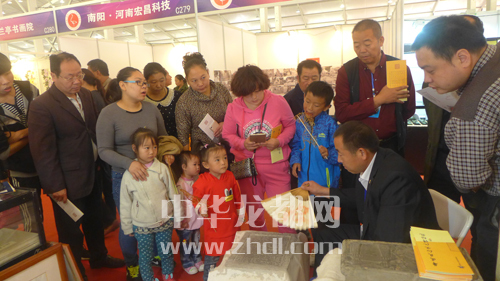 ????10月16日至19日,第二屆中原(鶴壁)文化產(chǎn)業(yè)博覽交易會(huì)在鶴壁市會(huì)展中心舉行,周口華威民俗文化博物苑參展有歷代石刻拓片、漢畫拓片、漢畫冊(cè)頁、漢畫長卷等多種文創(chuàng)產(chǎn)品,并現(xiàn)場(chǎng)演示了拓片制作工藝,受到與會(huì)人員的歡迎。圖為參會(huì)情景。 記者 劉彥章 攝
