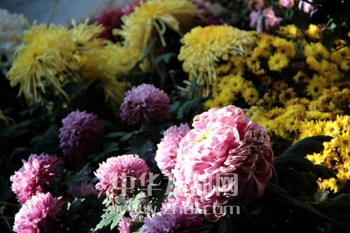 ????金秋時節(jié),菊花盡情綻放,一團(tuán)團(tuán)、一簇簇,紫的像霞,白的如雪,紅的似火,黃的像金,五彩斑斕,琳瑯滿目。葛英 攝
