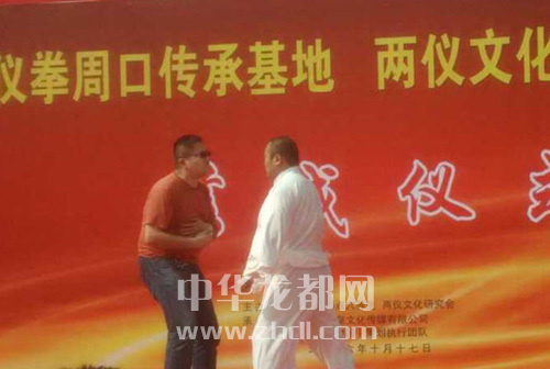 ????當(dāng)日,在兩儀拳周口傳承基地揭牌和兩儀文化周口發(fā)展中心落成儀式上,兩儀拳傳承人分別做了兩儀拳展示和兩儀養(yǎng)生功夫表演。隨后,段保華的弟子高躍鑫請(qǐng)現(xiàn)場觀眾上臺(tái)體驗(yàn)兩儀拳點(diǎn)穴。一位身材高大、體重近100公斤的彪形大漢應(yīng)聲上臺(tái)。彪形大漢與高躍鑫交流后,表示已準(zhǔn)備完畢。話音剛落,彪形大漢就被點(diǎn)中穴道,立即倒地。讓人驚奇的是,解穴后,彪形大漢隨即恢復(fù)正常?!耙郧奥犝f過兩儀拳的威力很大,沒想到會(huì)這么大。”彪形大漢說。