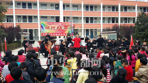 ????11月11日下午,周末公益劇場民族交響音樂進校園活動在許灣鄉(xiāng)李靈希望小學舉行, 周口民族管弦樂團的老師為該校600多名師生上了一節(jié)別開生面的音樂課,讓孩子們近距離感受到交響樂的魅力。晚報記者 王晨 攝