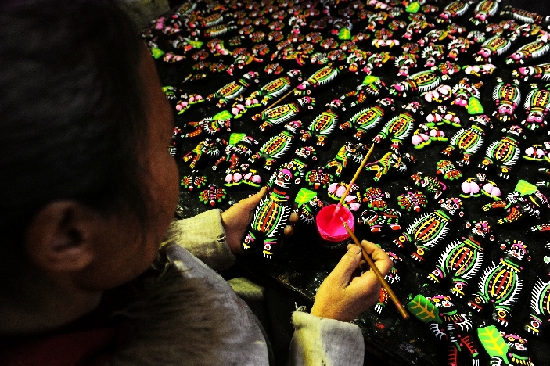 ????像金莊、陳樓、龐莊等泥泥狗、布老虎產(chǎn)業(yè)專業(yè)村,一些貧困群眾足不出戶,在家生產(chǎn),在當?shù)劁N售,僅一個廟會旅游旺季就收入高達上萬元。