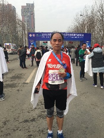 搶眼 山東老人堅(jiān)持跑馬拉松