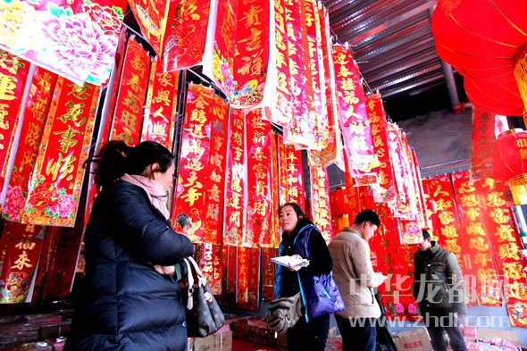 ????????近日在周口華耀城春聯(lián)批發(fā)市場(chǎng)小商販忙著進(jìn)貨,市民精心選購(gòu)。