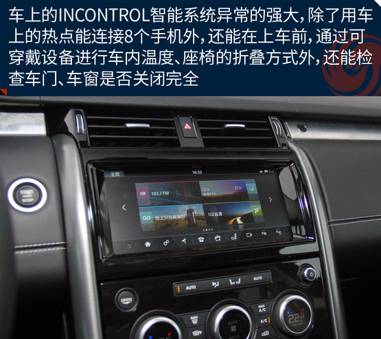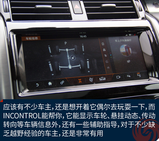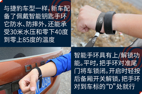 在配置上,新車也做到了盡善盡美,像方向盤加熱、四區(qū)自動空調(diào)、全景影像、英國之寶音響系統(tǒng)、后排娛樂系統(tǒng)、雙天窗它都有。智能系統(tǒng)方面,InControl系統(tǒng)除了常見的娛樂、媒體、熱點功能,還可以顯示并調(diào)節(jié)大量的車輛輔助信息,并支持遠程控制。此外還可選裝智能手環(huán),實現(xiàn)更方便的隨身鑰匙。