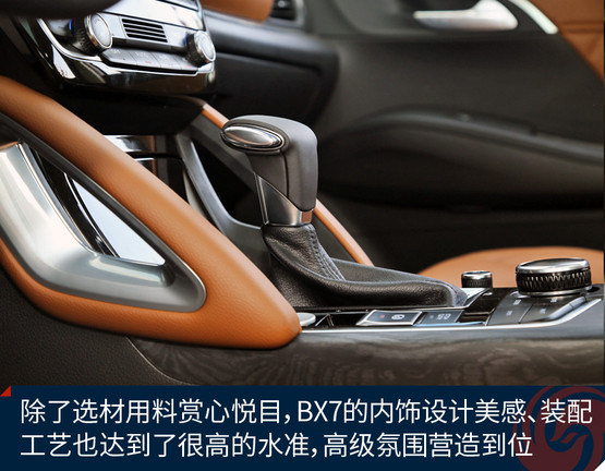 BX7的隔音材料總體夠足料,光在車門上就鋪設(shè)了兩個(gè)整圈+窗框上多半圈的密封隔音膠條,在這一價(jià)位的車型里絕對厚道。底盤的厚重感剛才提到了,高速行駛時(shí)無論風(fēng)噪還是輪胎噪音,抑或發(fā)動機(jī)噪音都挺有節(jié)制的,稍微來點(diǎn)音樂就能掩蓋掉,因此這個(gè)車跑高速公路是讓人心情愉悅的,車內(nèi)安靜,而且非常平穩(wěn)。