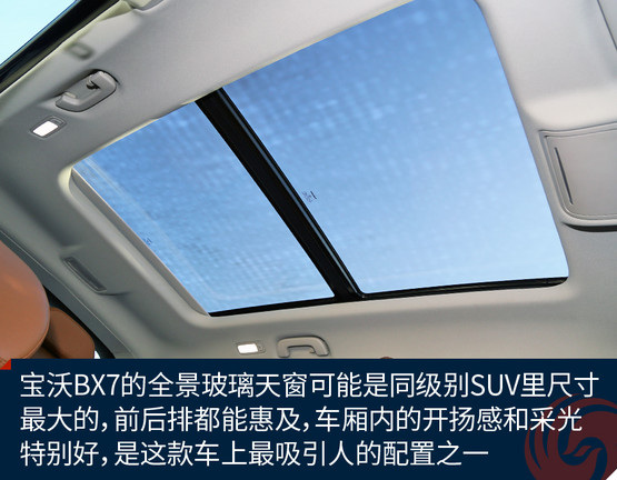 BX7是一款同時(shí)擁有5座、6座和7座布局的SUV車型,這款長度超過4.7米的SUV的確有能力在行李廂布置第三排座椅。不過這次我們試駕的車型仍是五座配置,對于這樣尺寸級別的SUV前后排空間自然都不是問題,相當(dāng)寬闊而且乘坐感非常舒服。旗艦版的配置亦相當(dāng)豐富,三溫區(qū)自動空調(diào)和前后排座椅加熱,以及同級別堪稱無敵的超大全景天窗,在配置方面很有吸引力,而再一次綜合其價(jià)格來看,明顯優(yōu)于同級別平均水平的標(biāo)準(zhǔn)配置再一次詮釋了“觸手可及的豪華”這一產(chǎn)品理念。