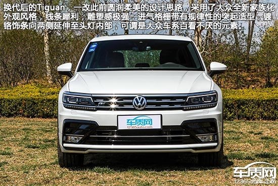 換代后的Tiguan,一改此前圓潤柔美的設(shè)計思路,采用了大眾全新家族化外觀風(fēng)格,線條犀利,雕塑感極強(qiáng),進(jìn)氣格柵帶有規(guī)律性的突起造型,鍍鉻飾條向兩側(cè)延伸至頭燈內(nèi)部,可謂是大眾車系百看不厭的元素。進(jìn)口版本提供了國產(chǎn)后見不到的R-Line套件,亮黑色飾板與倒梯形設(shè)計頗具原廠改裝氣息,同時前臉面積也被進(jìn)一步擴(kuò)大,給人中型SUV的既視感。
