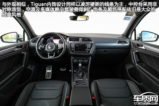 與外觀相似,Tiguan內(nèi)飾設(shè)計同樣以凌厲硬朗的線條為主,中控臺采用非對稱造型,空調(diào)及多媒體略向駕駛側(cè)傾斜,飾條及顏色搭配依舊是大眾的經(jīng)典風(fēng)格,雖然大面積覆蓋軟性搪塑材質(zhì),但手感稍硬,不過接縫相當(dāng)緊實,足以展現(xiàn)進(jìn)口車風(fēng)范。