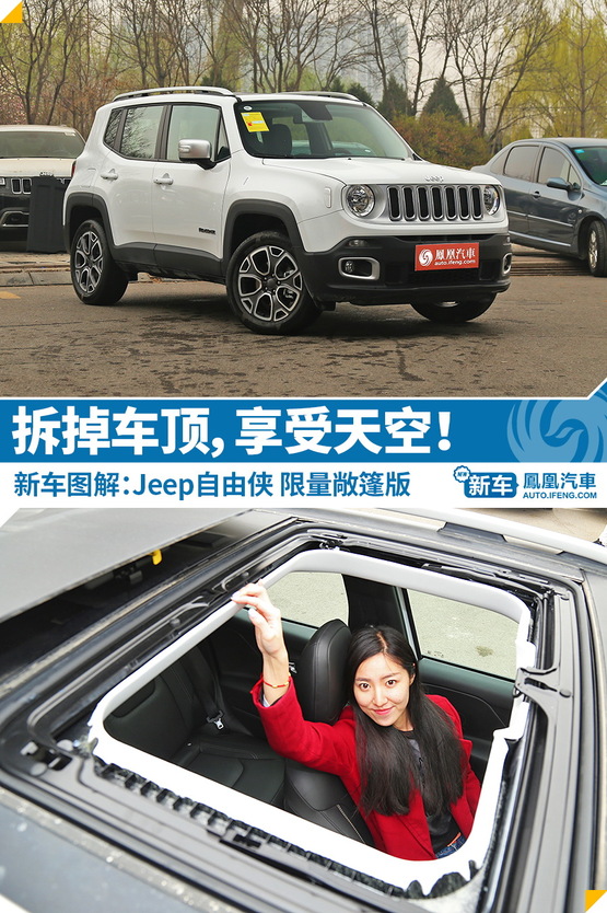?在買車前,你往往會有這些尷尬的情況,就是有個性的車買不起,買得起的長得太平常,長得不平常的家里人覺得太不實際,滿足實際需要的你自己不喜歡,買自己喜歡的車型往往是些不著邊際的車,挑一款樣子、實用而且全家都滿意的車怎么就那么費勁?當你最后不得不抓鬮,讓上帝幫你隨緣去決定買哪款車時,不妨輕輕的瞄一眼Jeep目前最小的SUV車型-自由俠,這款集合Jeep車型最多經(jīng)典元素的車型足夠拉風,配以相當專業(yè)的四驅(qū)系統(tǒng)能讓它的實用性猛漲,而且最重要的是最近上市了2017款的自由俠車型推出了敞篷版車型,說白了它有一個可拆卸的車頂,這樣的車是足夠拉風、足夠吸引人了吧?