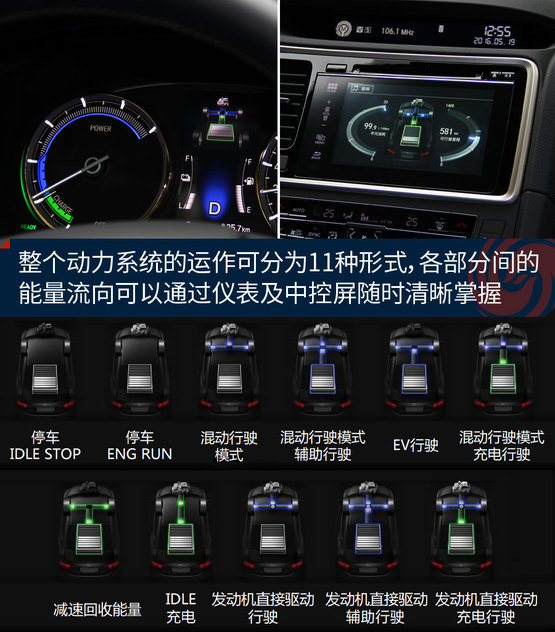 儀表也需要重新設(shè)計(jì),左側(cè)的轉(zhuǎn)速表變成了動(dòng)力顯示表。不過這跟雷克薩斯采用的液晶顯示方式不同,實(shí)體儀表只能固定在動(dòng)力顯示的樣子,愛駕駛的人習(xí)慣看的轉(zhuǎn)速表就沒法兼得了。此外,儀表液晶屏和中控大屏都提供了能流量顯示功能,方便駕駛者隨時(shí)了解車輛能量的流動(dòng)情況,也是個(gè)突顯逼格的利器。