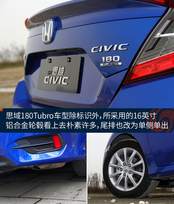隨著思鉑?;靹?dòng)車型的推出,這次走入門路線的思域1.0T也來打了個(gè)醬油。跟之前的1.5T車型相比,外形基本保持一致。鑒于其更入門的定位,輪轂的樣式看起來沒那么精致和動(dòng)感了,尾排改為了單側(cè)單出的設(shè)計(jì),車尾的動(dòng)力標(biāo)識(shí)也有之前的“220TURBO”改為“180TURBO”。