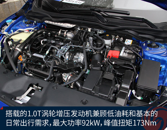 思域180TURBO車型搭載的是1.0升三缸渦輪增壓發(fā)動(dòng)機(jī),賬面上擁有的最大功率為92kW/5500rpm,最大扭矩達(dá)到了173Nm/2000-4500rpm,基本能夠達(dá)到主流1.8升自吸發(fā)動(dòng)機(jī)的水平。與之匹配的CVT無級(jí)變速器大家都比較熟悉,在本田品牌的車型中已經(jīng)有著廣泛的應(yīng)用。