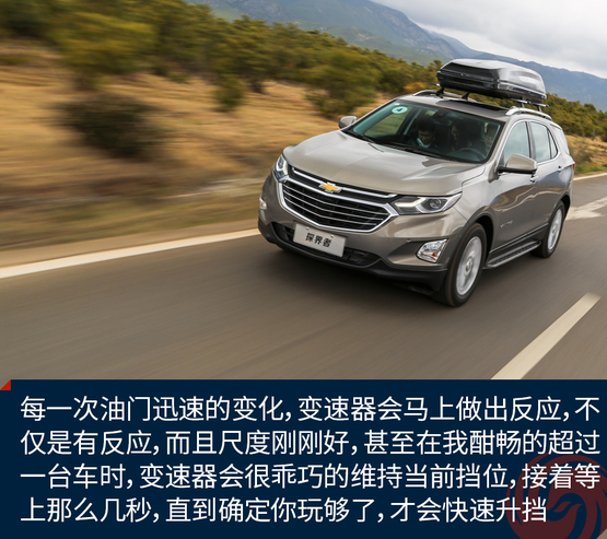 日常駕駛時(shí)的平順已讓我有些驚訝,而我進(jìn)一步試著去挑逗油門時(shí),探界者給了我更大的驚喜,每一次油門迅速的變化,變速器會(huì)馬上做出反應(yīng),不僅是有反應(yīng),而且尺度剛剛好,甚至在我酣暢的超過(guò)一臺(tái)車時(shí),變速器會(huì)很乖巧的維持當(dāng)前擋位,接著等上那么幾秒,直到你又安靜地做回美男子之后,才會(huì)快速的升到合適的擋位,這種高度的默契感是原來(lái)國(guó)產(chǎn)的雪佛蘭車上未曾見到的。