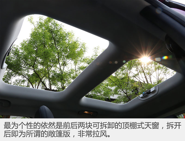 就跟一個長的很有氣質(zhì)又與眾不同的姑娘一樣,自由俠怎么看都看不膩,真的是太充滿設計感,外觀內(nèi)飾的每一處細節(jié)都仿佛充滿了讓你心動不已的彩蛋,等著你去欣賞和挖掘它隱藏在個性與時尚之下更深一層所體現(xiàn)的情懷;打著情懷的名號卻不失實用性,在空間上作為一臺小型SUV并沒有產(chǎn)生任何劣勢,乘坐空間的表現(xiàn)很優(yōu)秀,而可拆卸頂棚又為車內(nèi)帶來太好的通透性。