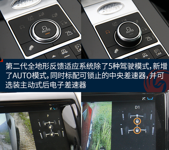 這套第二代全地形反饋適應(yīng)系統(tǒng),提供五種駕駛模式:普通駕駛模式、雪地模式、泥地模式、沙地模式以及攀巖模式。這些放在全新一代發(fā)現(xiàn)上似乎不值一提,不過第二代系統(tǒng)加入了AUTO模式,可自動(dòng)監(jiān)測行車狀況。同時(shí),第二代系統(tǒng)標(biāo)配可鎖止的中央差速器,并可選裝主動(dòng)式后電子差速器。