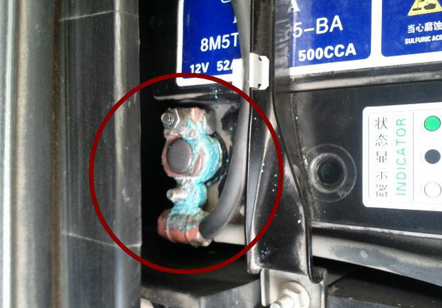????秋季時(shí)蓄電池的負(fù)極接線處有可能出現(xiàn)綠色類似晶狀的氧化物,根據(jù)4S店的說法是蓄電池的過度使用或者電池液外露導(dǎo)致的氧化,有些人甚至說這是正?,F(xiàn)象。如果未發(fā)現(xiàn)對蓄電池的正常使用產(chǎn)生影響,發(fā)現(xiàn)這些氧化物之后用開水沖一下即可去除,沖不掉就把它刮掉,同時(shí)抹上一點(diǎn)印度神油,確保蓄電池的堅(jiān)挺使用。至于這個(gè)印度神油,可以是黃油或者機(jī)油,抹上一點(diǎn)可以防止氧化。