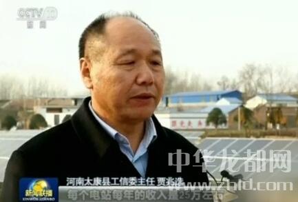 “塘上發(fā)電、塘下養(yǎng)魚。在河南太康縣劉寨村,原來廢棄的水塘不僅重新養(yǎng)上了魚,還又建了光伏太陽能發(fā)電設(shè)備。貧困戶劉宗林告訴記者,現(xiàn)在不僅用電不花錢,每年還有一定的分紅?!碑?dāng)晚的新聞聯(lián)播畫面中,開始就提到了太康縣老冢鎮(zhèn)劉寨村的發(fā)電項(xiàng)目。在長(zhǎng)達(dá)1分41秒的報(bào)道中,介紹太康縣的內(nèi)容占了1分多鐘。