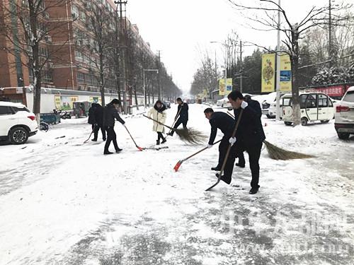 隨后,馬明超還到大同街、新華大街、陳州路查看各單位清掃積雪情況,走訪慰問衛(wèi)生區(qū)清理積雪的干部職工。