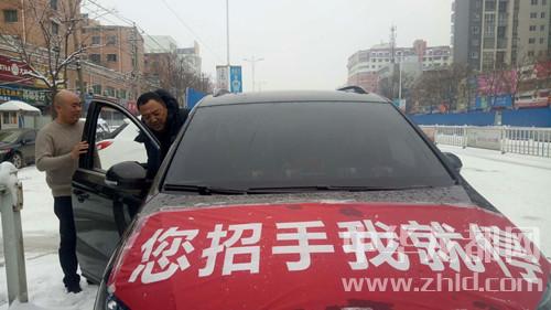 趙明禮個子不高,留著光頭,說起話來滿臉笑容。他說自己是一家汽車快修店的老板,1月24日下午下雪后,店里就沒有了生意。他覺得閑來無事,看到路上行人打車難、出行難,就萌生了開私家車免費接送市民的想法。