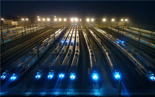2月1日,動(dòng)車(chē)組列車(chē)??吭谔旖騽?dòng)車(chē)客車(chē)段動(dòng)車(chē)運(yùn)用所。