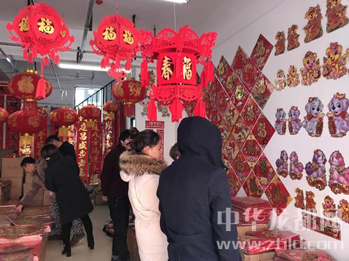近日,華耀城A區(qū)精品市場內(nèi)出現(xiàn)了一條“紅街”,因為這條街上的門店賣的是對聯(lián)、窗花、紅燭等紅色的商品?!芭l(fā)對聯(lián)就年前一個月的好生意,這幾天忙不過來,家里的親戚都來幫忙了!”經(jīng)營對聯(lián)批發(fā)生意的李陽說。他的店里掛著各式各樣的對聯(lián)、年畫(圖二),其中一些帶有小狗元素的裝飾品銷量特別好。