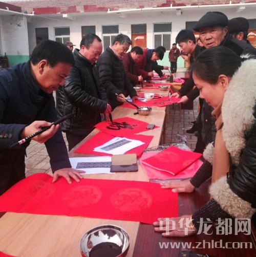 活動(dòng)現(xiàn)場(chǎng),姜永來(lái)及各位書(shū)法家潑墨揮毫,一副副行書(shū)、隸書(shū)、楷書(shū)春聯(lián)各具特色,前來(lái)領(lǐng)取的村民絡(luò)繹不絕,熱鬧非凡、暖意融融、翰墨飄香。春聯(lián)內(nèi)容主要圍繞扶貧政策、新春美好祝愿及社會(huì)主義核心價(jià)值觀等,活動(dòng)持續(xù)了近4個(gè)小時(shí),書(shū)寫(xiě)春聯(lián)400余幅,為即將來(lái)臨的春節(jié)增添了濃厚的喜慶氛圍。