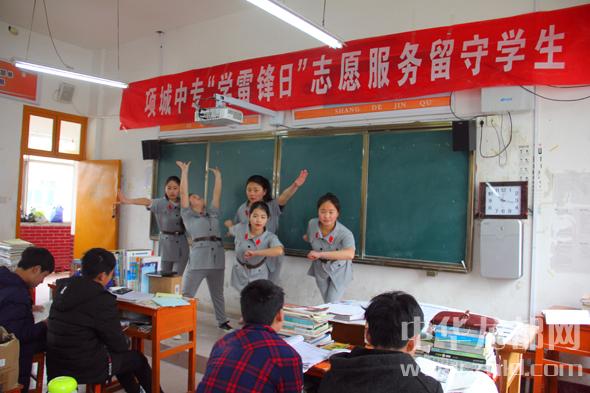 為了更好地傳承雷鋒精神,3月6日,項城市中等專業(yè)學(xué)校志愿服務(wù)隊走進(jìn)學(xué)校,來到留守學(xué)生身邊,給他們送去一場精彩的文藝演出。
