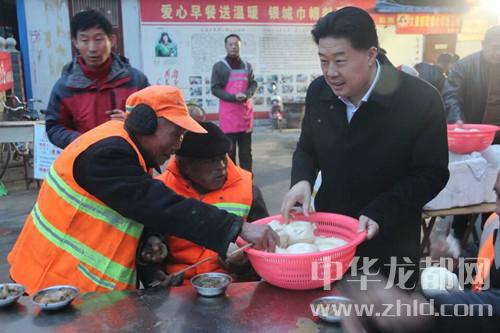 中華龍都網(wǎng)訊周口報(bào)業(yè)全媒體記者 馬治衛(wèi) 通訊員 徐孫楊)3月20日早,新疆河南總商會(huì)會(huì)長(zhǎng)朱軍一行從新疆專程趕往太康,為該縣“愛心早餐”工程捐款10萬(wàn)元,并親自為環(huán)衛(wèi)工人端菜送饅頭,并向志愿者和環(huán)衛(wèi)工致以親切地慰問。