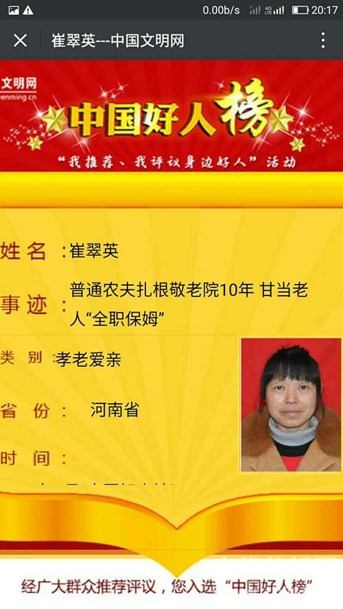 太康:崔翠英入選3月份中國(guó)好人榜