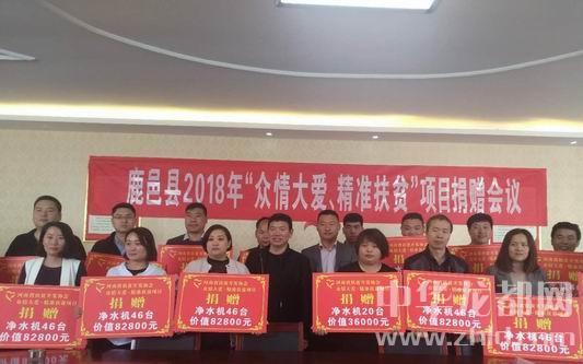 中華龍都網(wǎng)訊(周口報業(yè)全媒體記者 李瑞才 文/圖)4月26日上午,2018年“眾情大愛、精準(zhǔn)扶貧”捐贈儀式在鹿邑縣掀開大幕。河南省扶貧開發(fā)協(xié)會、河南省“眾情大愛、精準(zhǔn)扶貧”項目組委會主任衛(wèi)建亞出席儀式并現(xiàn)場向鹿邑縣捐贈1000臺價值180萬元的凈水設(shè)備。來自全縣24個鄉(xiāng)鎮(zhèn)(辦事處)的1000名貧困戶家庭很快就可以飲用到放心安全的“扶貧水”了。