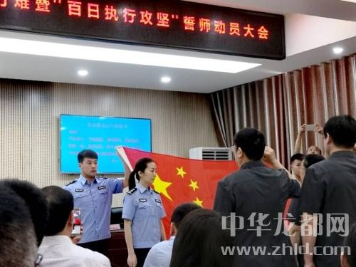 會上,黨組成員、政治部主任邵士明同志宣布了《川匯區(qū)人民法院開展決勝基本解決執(zhí)行難暨“百日執(zhí)行攻堅”實施方案》。執(zhí)行警務(wù)局孫現(xiàn)新局長和各執(zhí)行組組長分別遞交軍令狀,并作表態(tài)發(fā)言。全體執(zhí)行警務(wù)局干警就決勝基本解決執(zhí)行難暨“百日執(zhí)行攻堅”戰(zhàn)向國旗進(jìn)行了宣誓。