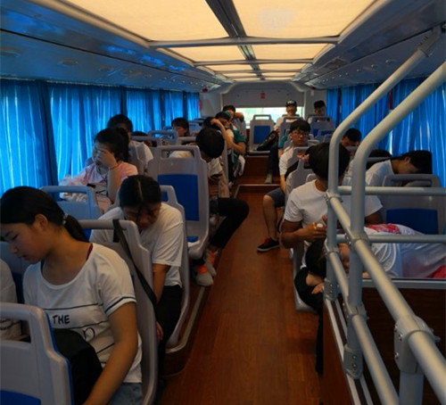 周口市文昌中學(xué)考點(diǎn)地處較為偏僻,考點(diǎn)周邊公共服務(wù)設(shè)施較少,市公交總公司投入兩輛雙層空調(diào)公交車(chē)作為公交空調(diào)休息車(chē),從早上8時(shí)開(kāi)放至下午5時(shí),專(zhuān)供考生及其家長(zhǎng)候考使用。為了給考生加油打氣,兩輛雙層公交都拉上高考祝福標(biāo)語(yǔ)“天王蓋地虎全考985,寶塔鎮(zhèn)河妖全上211”、“今年考生特別牛,全部都上雙一流”。兩個(gè)詼諧幽默的標(biāo)語(yǔ),給考場(chǎng)外帶來(lái)一些輕松氣氛,緩解考生和家長(zhǎng)的緊張情緒,也給考場(chǎng)外增添了樂(lè)趣。