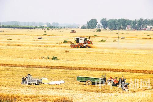 現(xiàn)在我市麥收已近尾聲。收獲時,縱橫交錯的麥田一片金黃,把鄉(xiāng)村裝點得格外美麗。收割機在麥田中穿梭,陣風吹過,麥浪隨風起舞,猶如一幅田園畫卷。呂耀光 攝