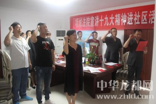 中華龍都網(wǎng)訊 (周口報業(yè)全媒體記者 牛勇威 通訊員 李康 文/圖 )為深入學(xué)習(xí)宣傳貫徹黨的十九大精神,讓十九大精神更好地惠及廣大人民群眾,6月11日下午,項城法院政治處、機(jī)關(guān)黨委組織干警到項城市水寨辦事處廣場社區(qū),組織開展“學(xué)習(xí)貫徹十九大,文明單位社區(qū)行”宣講活動。項城市水寨辦事處廣場社區(qū)班子成員及來自社區(qū)的10余名黨員和群眾代表參加了此次活動。