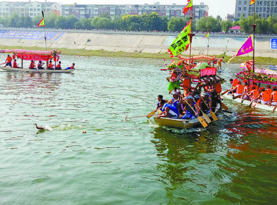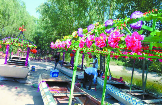 據(jù)了解,周口翎船有著100多年的歷史,翎船因其身較短,平頭柳葉形,輕捷靈便,獨(dú)具特色,加上每個(gè)翎船不惜重彩“打扮”,裝飾各有差異,有別于南方的龍舟。記者 張志新 攝
