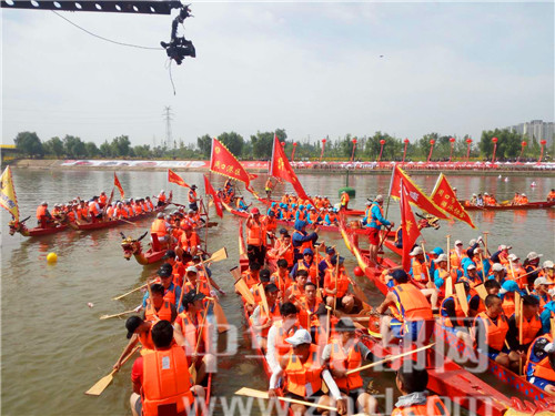 精彩無(wú)比的翎船捕鴨賽后,首先進(jìn)行的是市直組、企業(yè)組200米競(jìng)速賽的預(yù)選賽。隨著發(fā)令槍響,各參賽隊(duì)伍迅速搖動(dòng)船槳,爭(zhēng)先恐后地向前劃行。在兩岸觀眾一浪高過(guò)一浪的吶喊助威聲中,參賽隊(duì)頑強(qiáng)拼搏,競(jìng)相沙潁河上飛渡,不僅點(diǎn)燃了市民傳承龍舟文化的熱情,也點(diǎn)燃了周口人民的競(jìng)進(jìn)激情。