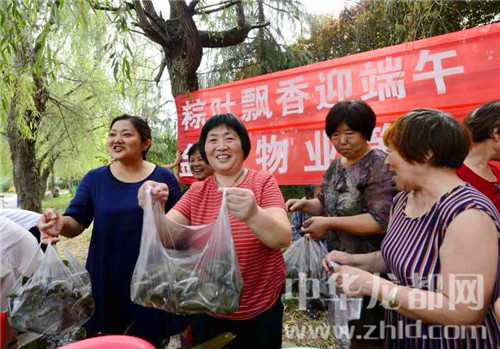 在一片歡聲笑語(yǔ)中,包好的400多個(gè)粽子被分發(fā)給小區(qū)的老人,為他們送去一份節(jié)日的問(wèn)候。