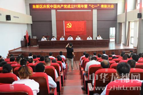 本報訊 (記者 張勁松 通訊員 王艷霞 文/圖) 6月22日,東新區(qū)召開慶祝中國共產(chǎn)黨成立97周年暨表彰先進大會(如右圖)。東新區(qū)黨工委書記閆立超出席會議并講話,東新區(qū)全體班子成員在主席臺就座。區(qū)直機關(guān)全體科級干部,各鄉(xiāng)(辦)書記、副書記、組織委員和組織干事,基層行政村(社區(qū))黨支部書記、2018年新黨員代表以及受到表彰的先進基層黨組織負責(zé)人、優(yōu)秀黨務(wù)工作者、優(yōu)秀基層黨支部書記和優(yōu)秀共產(chǎn)黨員等共計170余人參加會議。會議由東新區(qū)管委會主任張建黨主持。