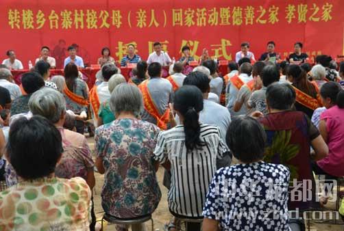 中華龍都網(wǎng)訊(周口報業(yè)全媒體記者 馬治衛(wèi) 通訊員 徐偉)太康縣轉(zhuǎn)樓鄉(xiāng)臺寨村接父母(親人)回家活動暨德善之家孝賢之家授匾儀式于7月6日在臺寨村村北小樹林舉行。