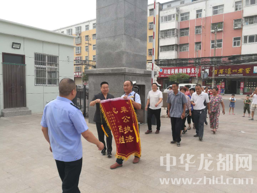 中華龍都網(wǎng)訊 (周口報(bào)業(yè)全媒體記者 陳永團(tuán) 通訊員 智艷威 戚娟娟)7月12日上午,家住商水縣巴村鎮(zhèn)的九名村民,將一面標(biāo)著“秉公執(zhí)法,心系百姓”的錦旗送到商水縣人民法院執(zhí)行局,以感謝庭長苑慶宏在執(zhí)行中公正高效的司法行為,并對其在執(zhí)行案件中情系百姓的工作態(tài)度給予高度贊揚(yáng)。