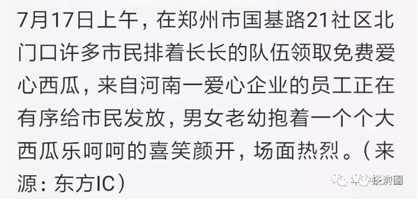鄭州市民排著長長的隊伍領(lǐng)取免費愛心西瓜,來自咱扶溝的宋鐵托做了一件感動家鄉(xiāng)人小事,而這件小事卻上了《人民日報》。