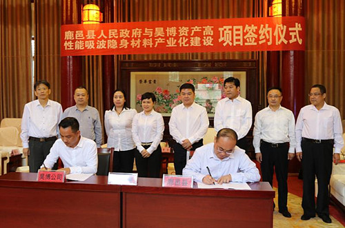 7月30日,鹿邑縣人民政府與昊博資產(chǎn)高性能吸波隱身材料產(chǎn)業(yè)化建設(shè)項(xiàng)目簽約儀式在縣委黌學(xué)堂舉行。縣委副書(shū)記、縣長(zhǎng)李剛,縣委常委、縣委辦公室主任宋濤,縣委常委、統(tǒng)戰(zhàn)部長(zhǎng)閆家明,縣產(chǎn)業(yè)集聚區(qū)黨委書(shū)記毛斌以及昊博資產(chǎn)董事長(zhǎng)李佳、總經(jīng)理禹建基等出席簽約儀式。