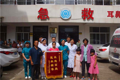 8月20日上午,伴著歡快的嗩吶聲,鄲城縣張完鄉(xiāng)的王先生和妻子、女兒一起懷著激動的心情,帶著一面印有“醫(yī)德高尚 醫(yī)術(shù)精湛”的錦旗來到鄲城縣中醫(yī)院,把錦旗送到該院急診科醫(yī)護人員手中,算是了結(jié)了一樁讓他和家人牽掛了兩年的“心事”。